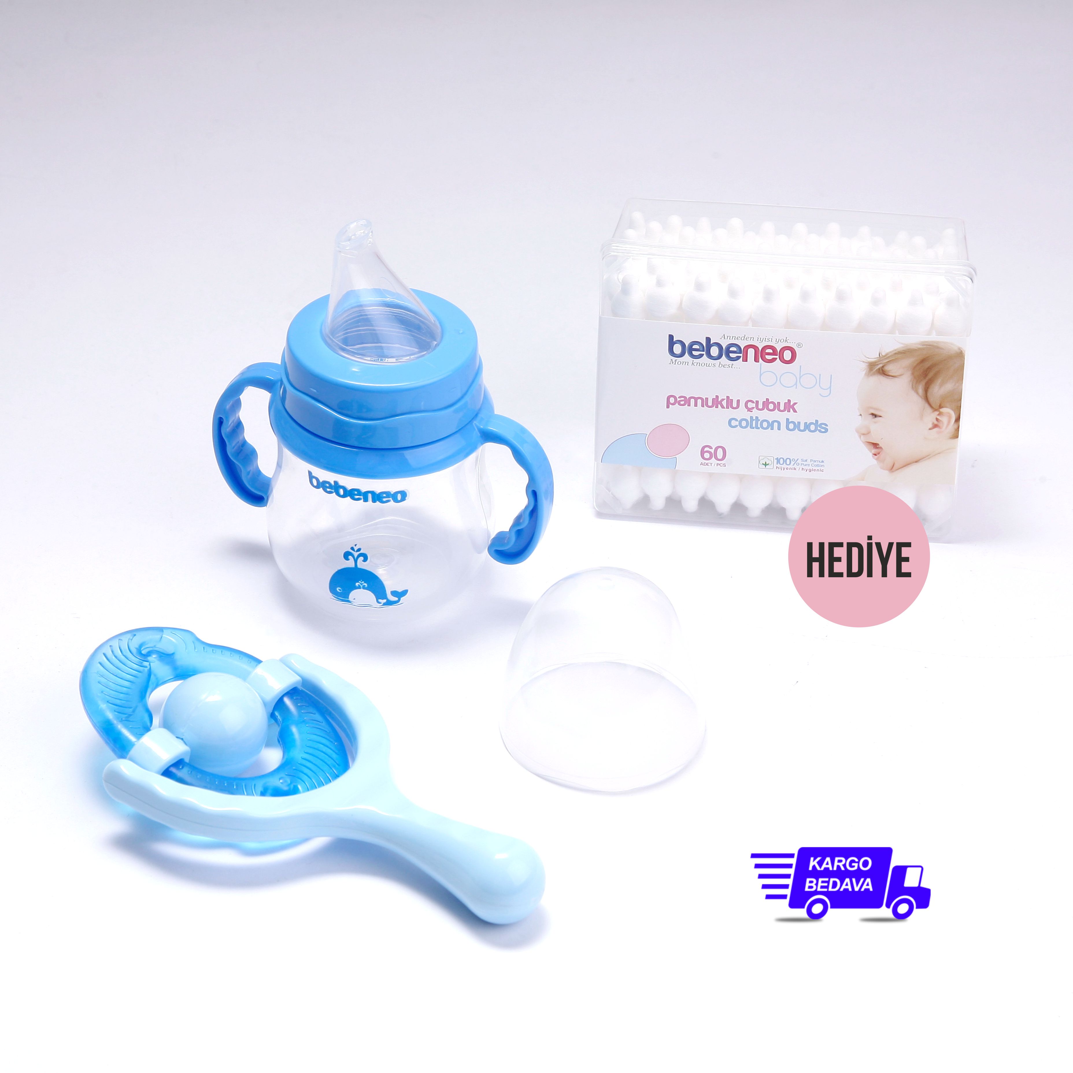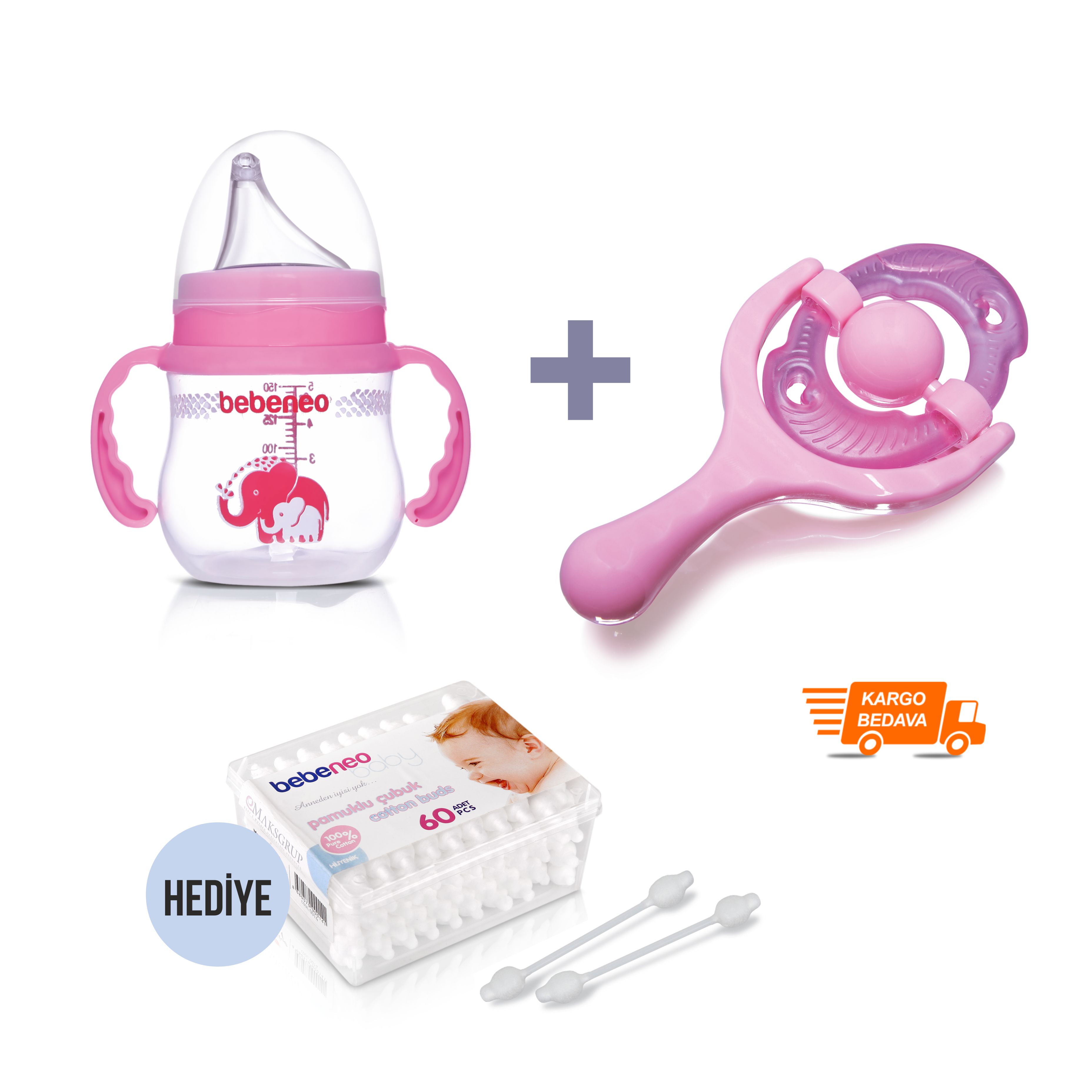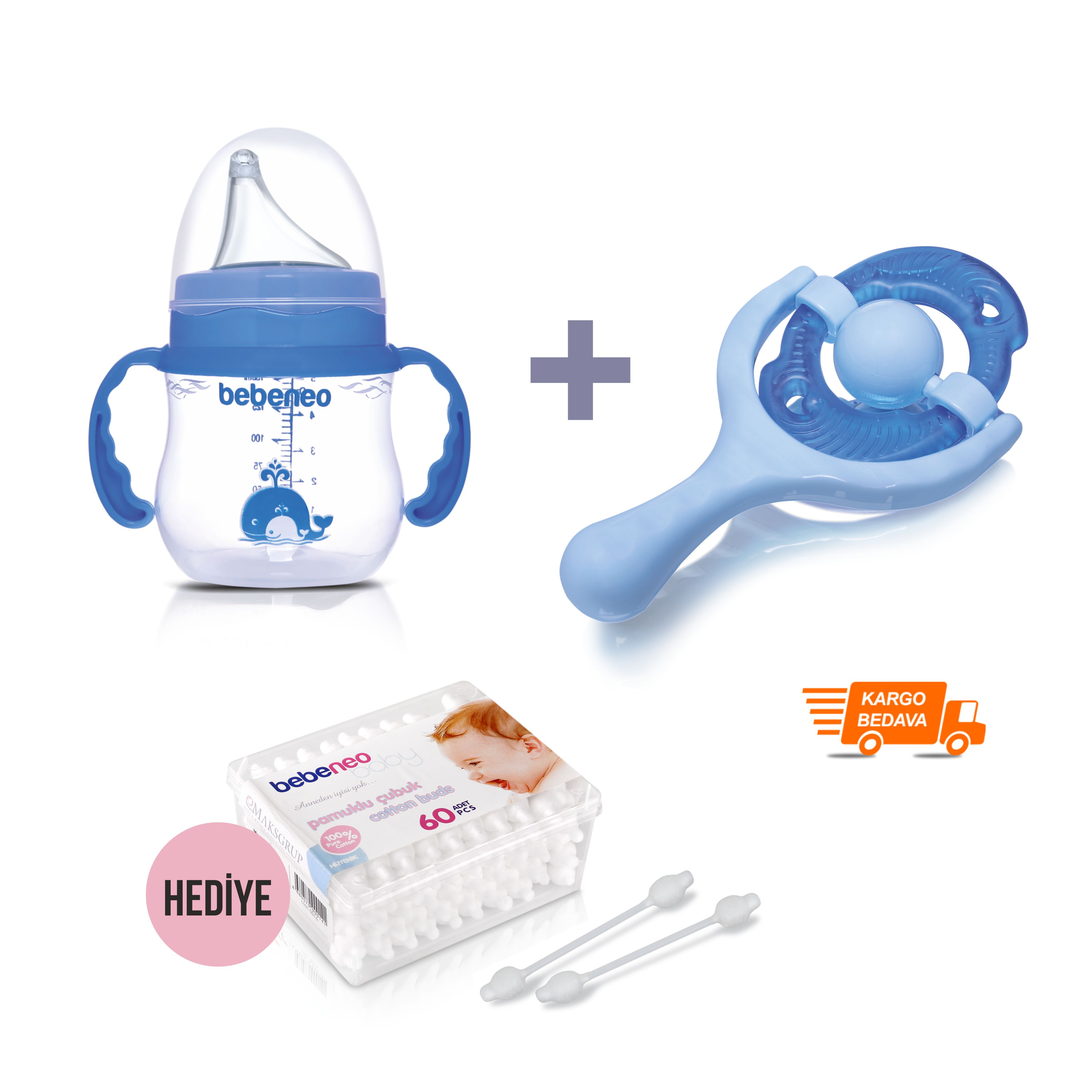 Kulplu, Silikon Uçlu, Damla Akıtmaz PP Suluk 150 ML + Çıngıraklı Sulu Diş Kaşıyıcı (Kulak Çubuğu Hediyeli)