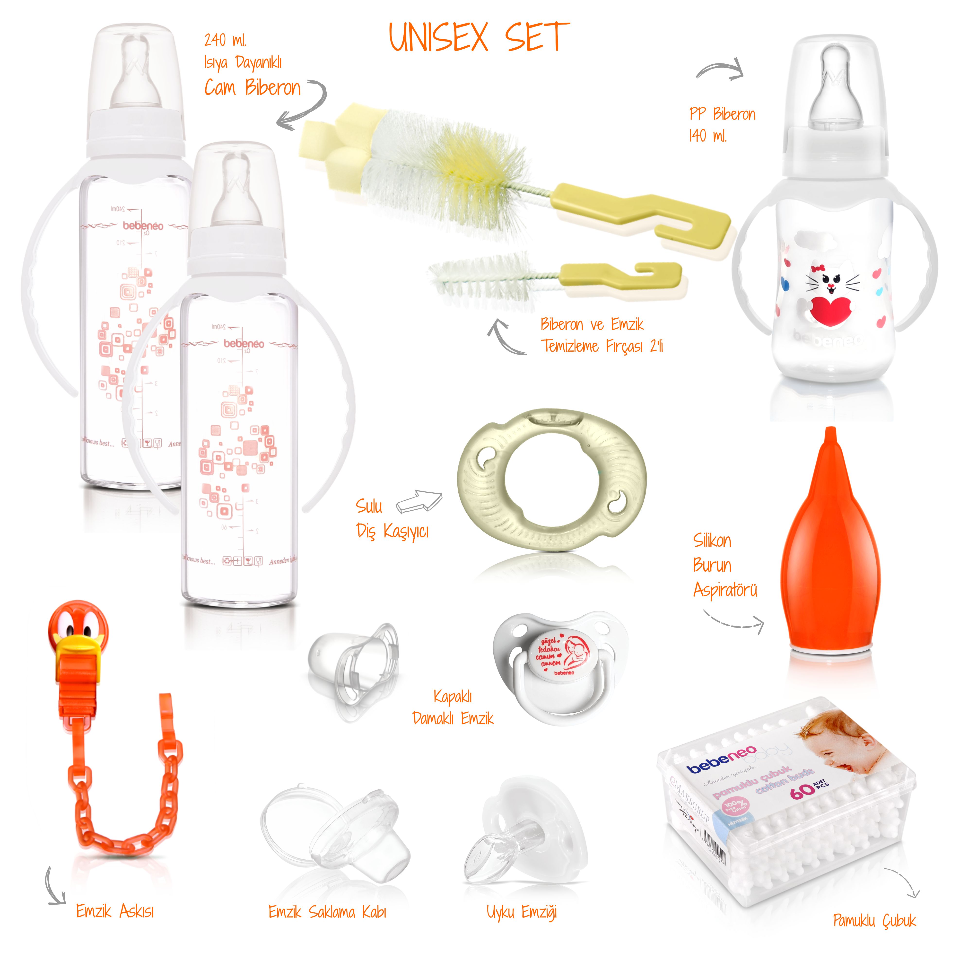 UNISEX YENİDOĞAN BEBEK HEDİYE SETİ İÇERİĞİ:
